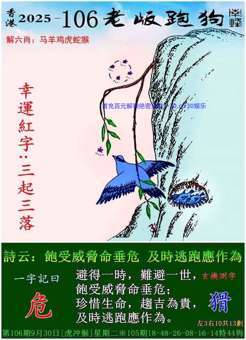 109期:助理玄机诗/简单好下注/台湾玄机诗/港台澳七肖/必中人物